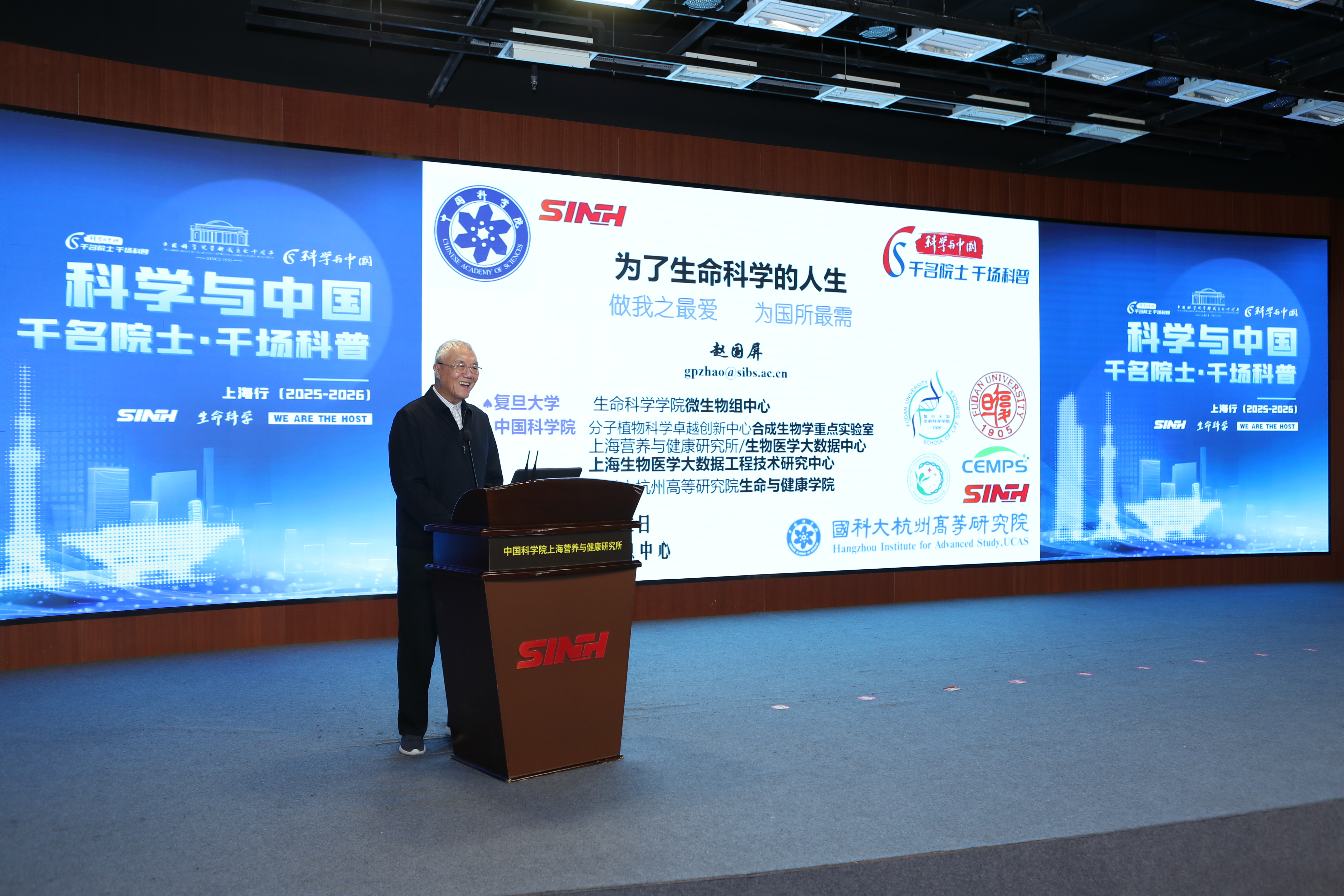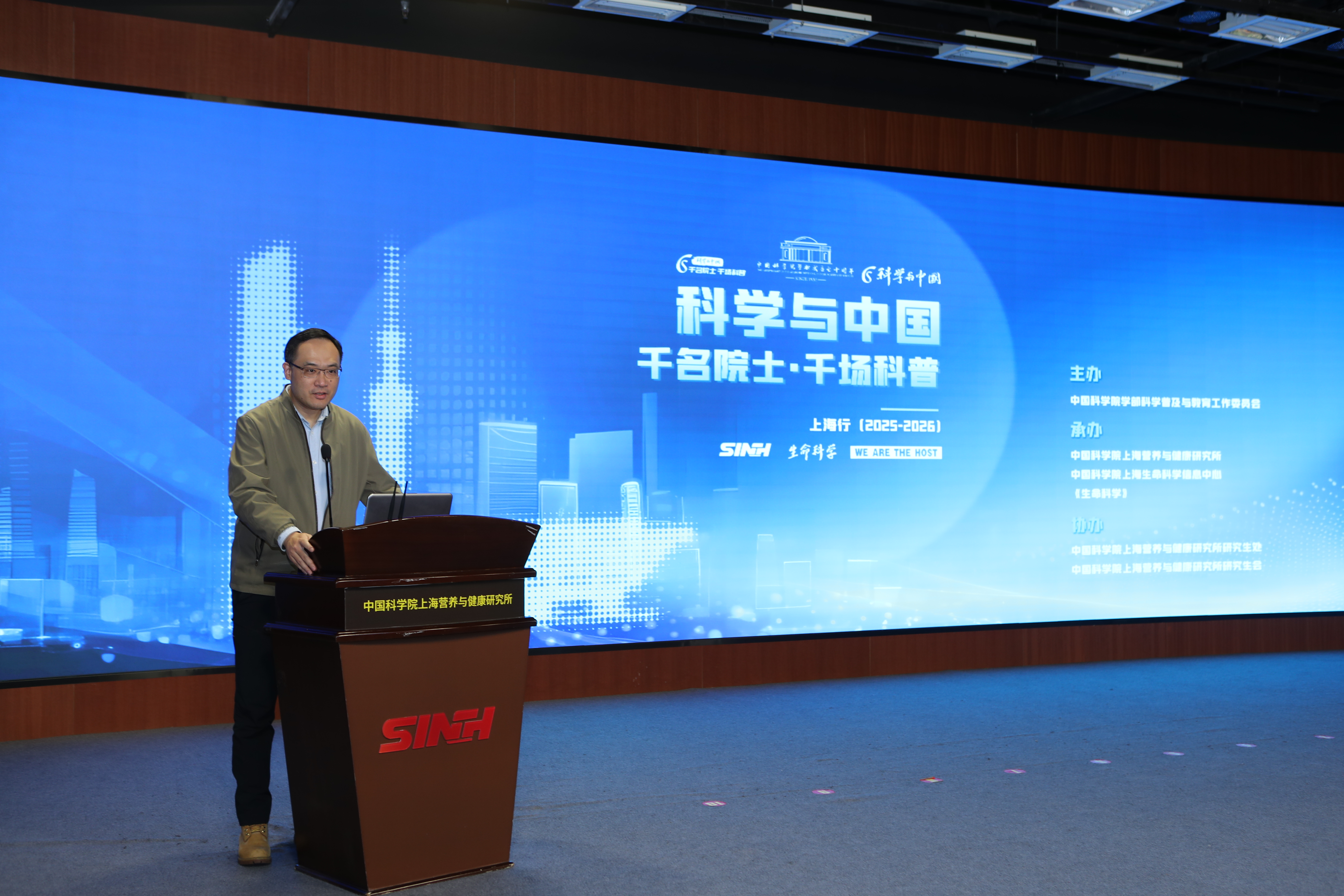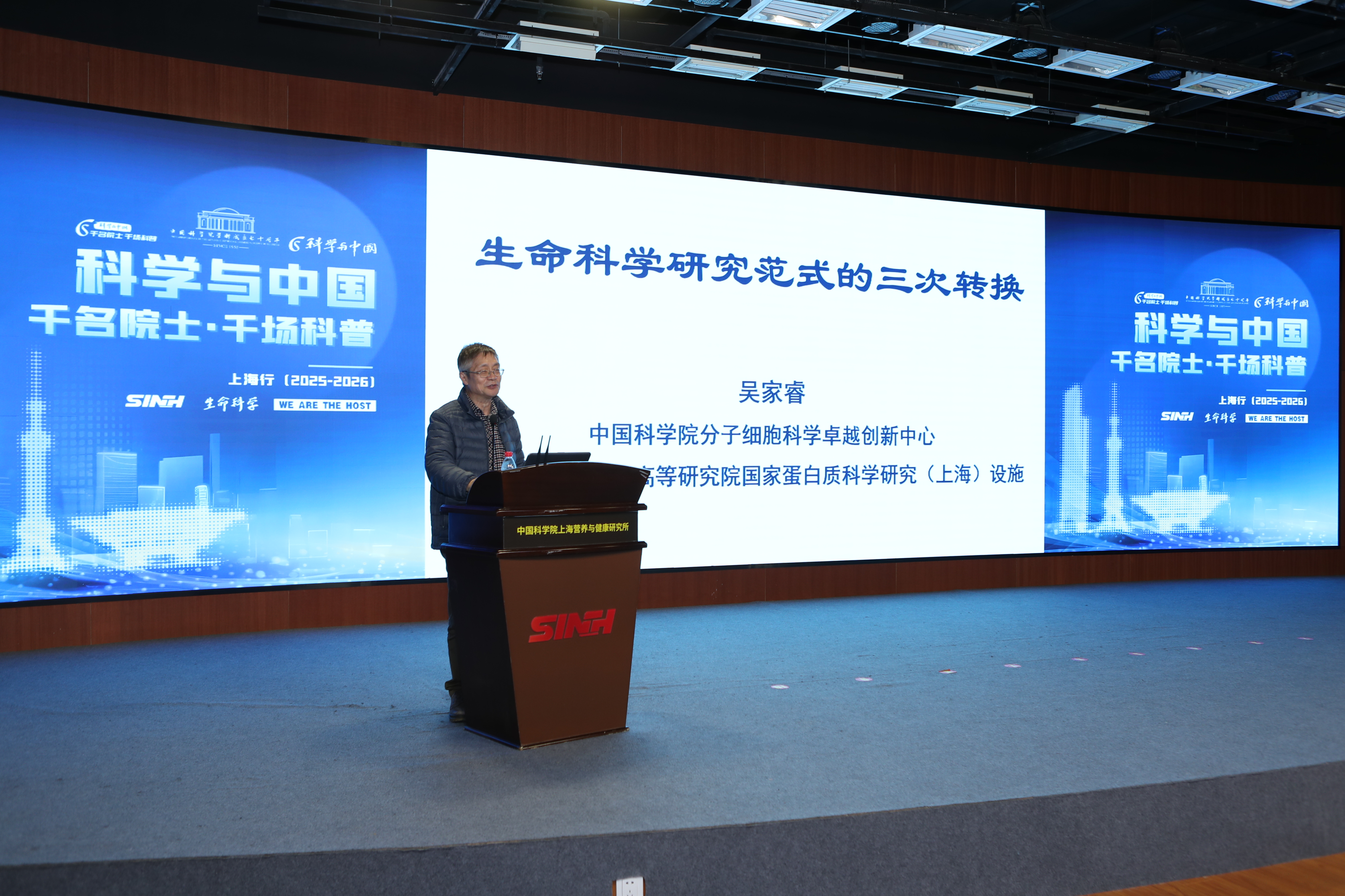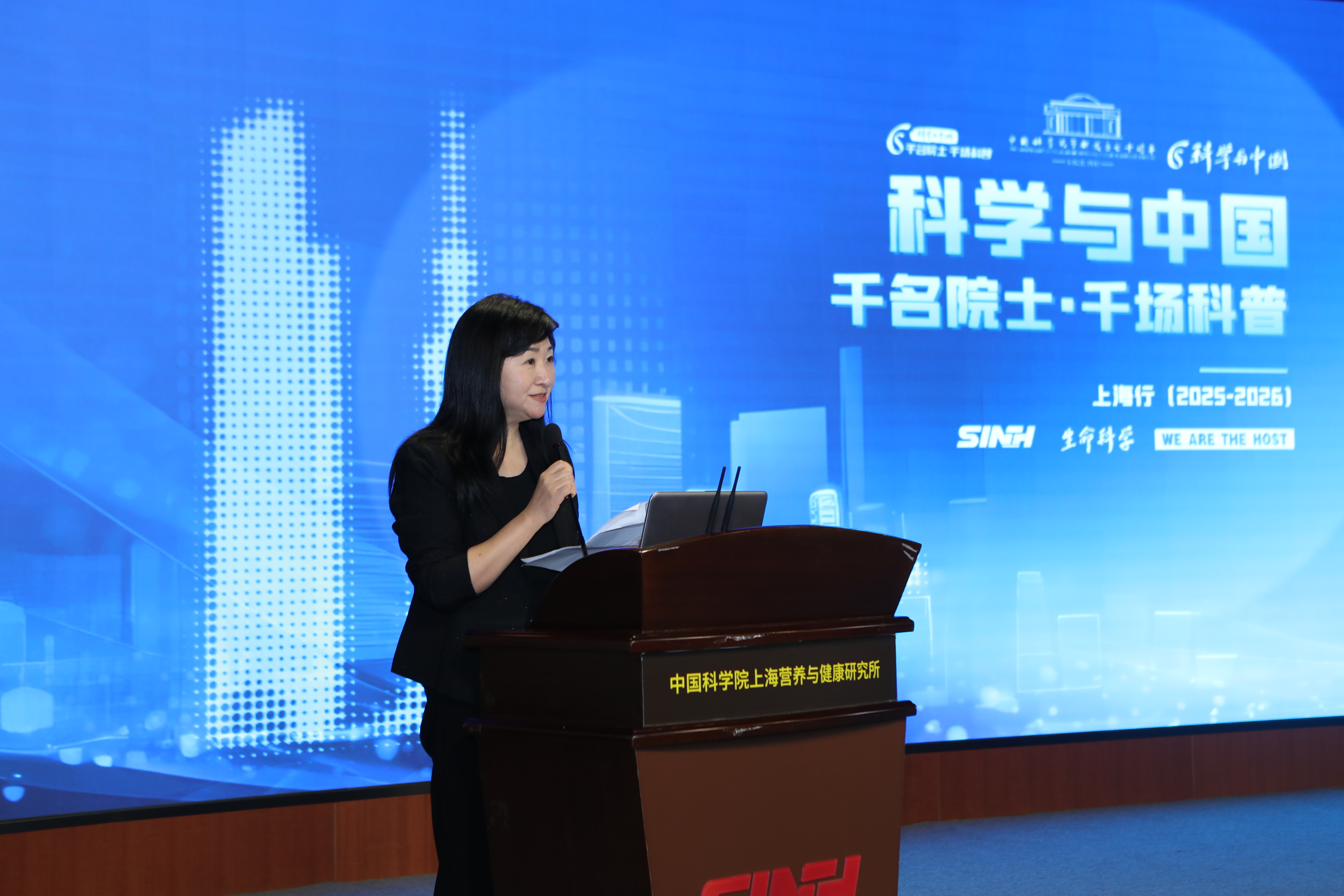 12月2日,“科學與中國——千名院士·千場科普”上海行活動(2025-2026)啟動。首場科普活動在中國科學院上海營養與健康研究所以線上線下相結合的方式舉行。位于岳陽路的科學大院學術氛圍濃厚,來自營養與健康所、上海市研發公共服務平臺管理中心、上海科學學研究所、《生命科學》編委會等科研單位及組織的科技工作者、研究生們與線上3700余名公眾共同聆聽了趙國屏院士和吳家睿研究員的精彩報告。